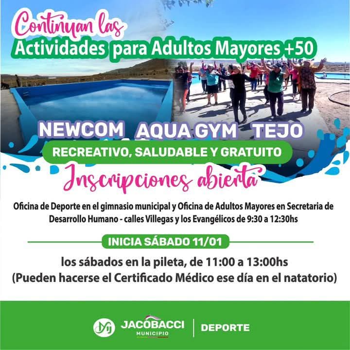 La secretaria de Desarrollo Humano Municipal y el equipo de Adultos Mayores invitan a las personas mayores de 50 años a sumarse a las actividades recreativas, saludables y gratuitas que se llevarán adelante este verano en Jacobacci.