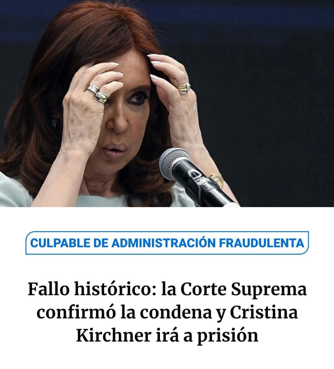 Luego del histórico fallo de la Corte Suprema de Justicia, Cristina Fernández de Kirchner, ex presidenta y ex vicepresidenta de la Nación, fue condenada este martes a seis años de prisión e inhabilitación perpetua para ejercer cargos públicos por el delito de administración fraudulenta en perjuicio del Estado. La causa, conocida como “Vialidad”, investigó la asignación de 51 contratos de obras viales en la provincia de Santa Cruz entre 2003 y 2015 a favor del empresario Lázaro Báez, cercano al entorno de los Kirchner.