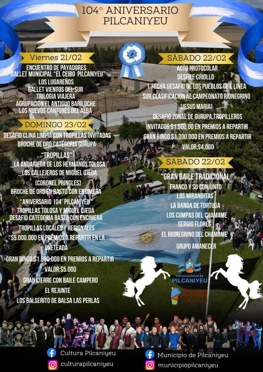 "PILCANIYEU 2025 | 104° ANIVERSARIO PILCANIYEU "Fiesta del Pueblo" , días 21, 22 y 23 de febrero de 2025