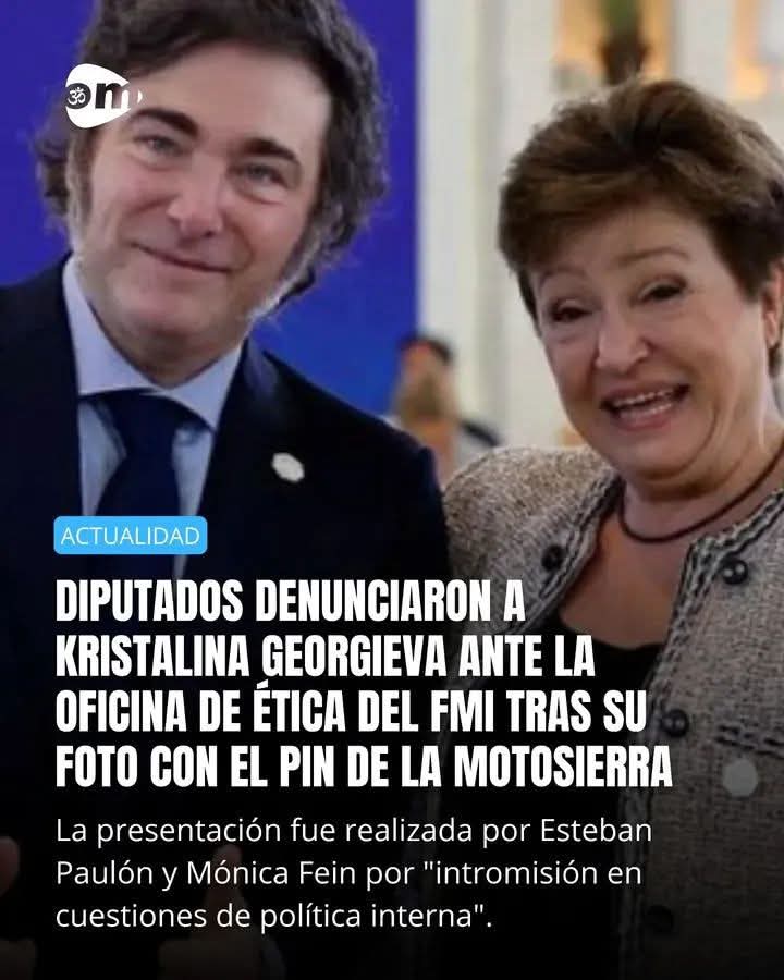 El legislador Esteban Paulón publicó en la red social X la presentación que realizó junto a su compañera de espacio, Mónica Fein, ante el organismo financiero: “KRISTALINA GO HOME. Su intromisión en cuestiones de política interna de Argentina e identificación con el partido de la ‘motosierra’ son inaceptables”, manifestó.