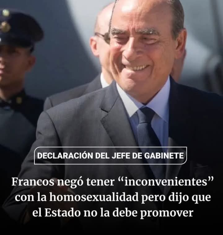 En ese sentido, tras ser consultado por el discurso del presidente, Francos negó tener “inconvenientes” con la homosexualidad. Pero “otra cosa diferente es hacer campañas promoviendo o a favor (de esos temas). Eso genera confusiones, sobre todo en los más jóvenes. Yo no veo problemas en que cada uno viva la vida como quiera, distinto es la promoción de esas situaciones de manera pública”, manifestó el funcionario en diálogo con Radio Con Vos.