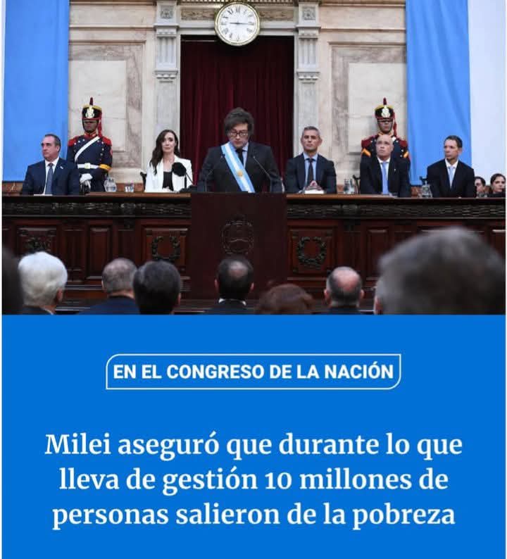 En otro pasaje, al hablar de las mejoras conseguidas durante su gestión, el presidente señaló que “observamos cómo la pobreza bajó del 56% al 33%, que en cantidad de habitantes se traduce en 10 millones de personas que salieron de la línea de la pobreza”.