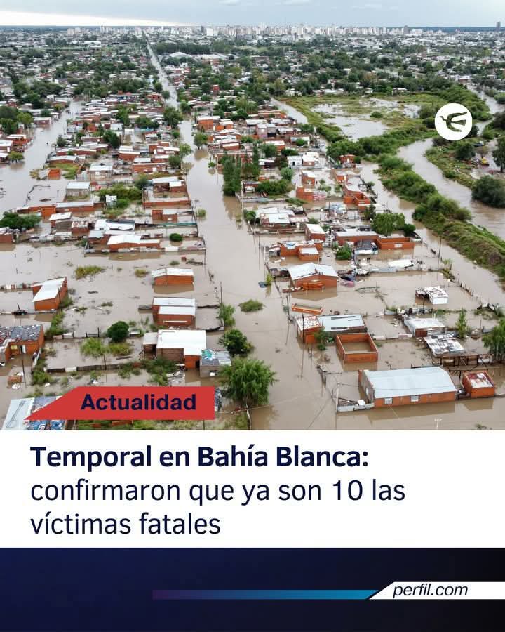 El temporal que afecta a la ciudad de Bahía Blanca ya se cobró 10 víctimas. Además, hay más de 1.300 evacuados y los servicios de transporte fueron suspendidos.