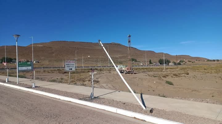 Automovilista colisionó contra una farola del ingreso a Jacobacci por el Bulevar Rogelio Cortizo recientemente inaugurado ocasionando graves daños materiales