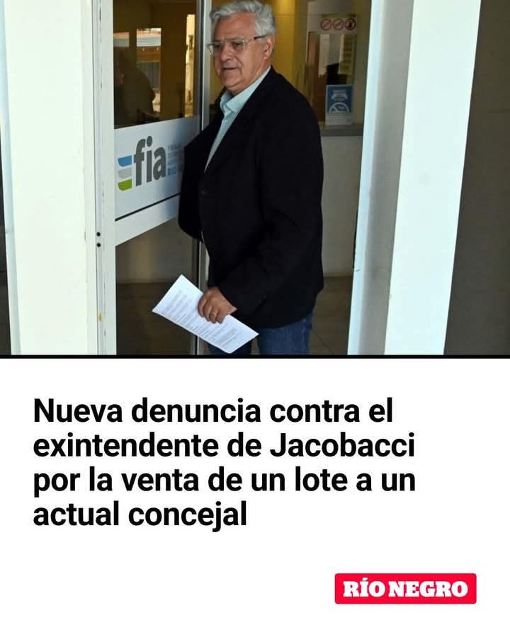 El intendente pidió que «se investigue el accionar del Sr. Joel Cordoba como comprador del lote pero también del otrora intendente Carlos Toro que a sabiendas firmó el contrato de compraventa en representación de Ing. Jacobacci advirtiendo un evidente abuso de poder y enriquecimiento indebido a través de conductas carentes de toda ética pública».