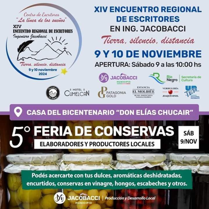 El Municipio de Jacobacci invita al XIV Encuentro Regional de Escritores que organiza el Centro de Escritores “La Línea de los Sueños”, los días 9 y 10 de noviembre