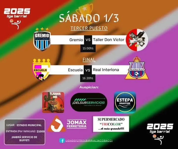 Además, se jugará el partido por el tercer puesto, donde Gremio enfrentará a Taller Don Victor por el último puesto del podio (tercer lugar).