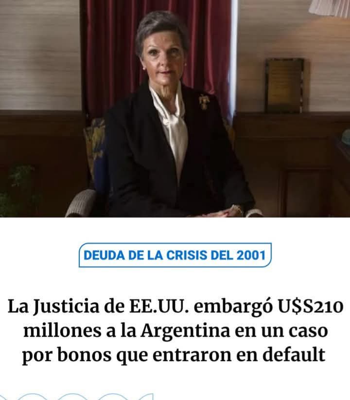 La Justicia de Estados Unidos autorizó embargos por un total de U$S210 millones contra Argentina en el marco del litigio por el incumplimiento de deuda soberana tras la crisis de 2001. La decisión, tomada por la jueza Loretta Preska, también dispuso el bloqueo de otros U$S100 millones hasta que dos grupos de acreedores, Attestor Master y Bainbridge Fund, finalicen su reclamo.