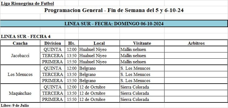 Se Jugó la Sexta Fecha de la Liga Rionegrina, Subsede Línea Sur
