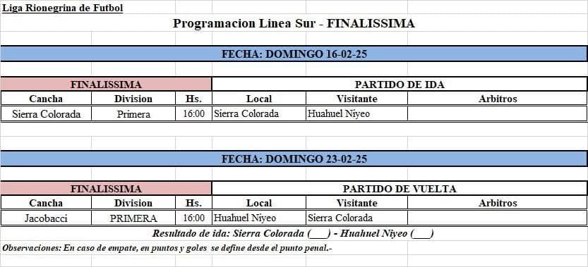 LRF ZONA SUR El 16/02/23 Finalísima ida Sierra Colorada – Huahuel Niyeo