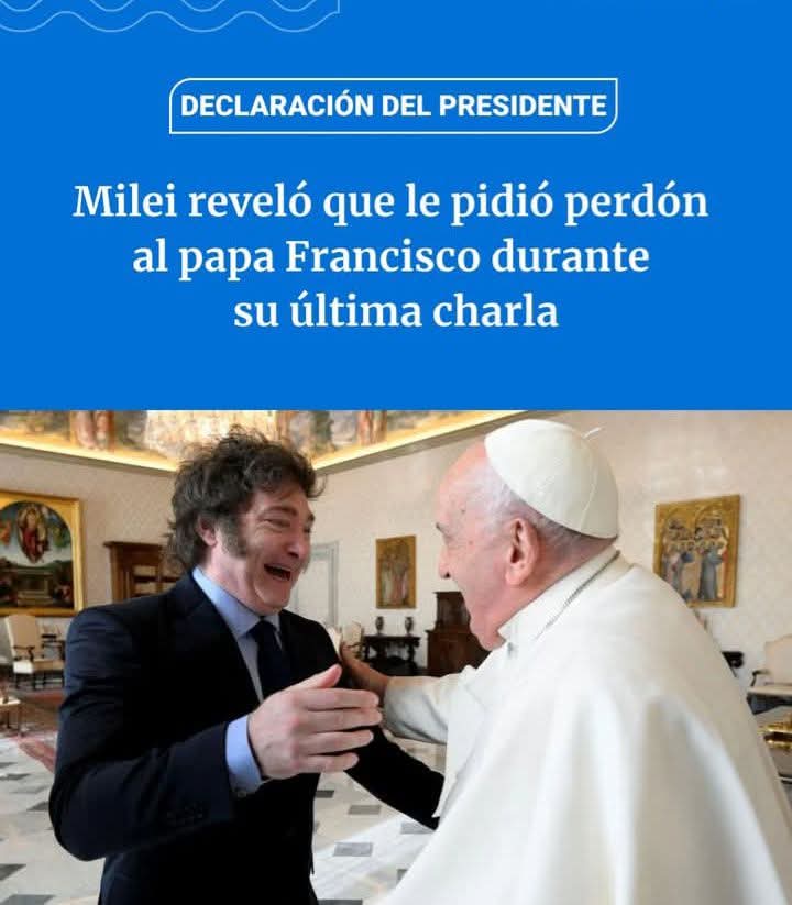 El presidente Javier Milei sorprendió al revelar que le pidió “perdón” al papa Francisco durante su último encuentro. Además, durante una entrevista, destacó el rol del pontífice como una figura de relevancia histórica: “Este sábado será la despedida del argentino más importante de la historia”.