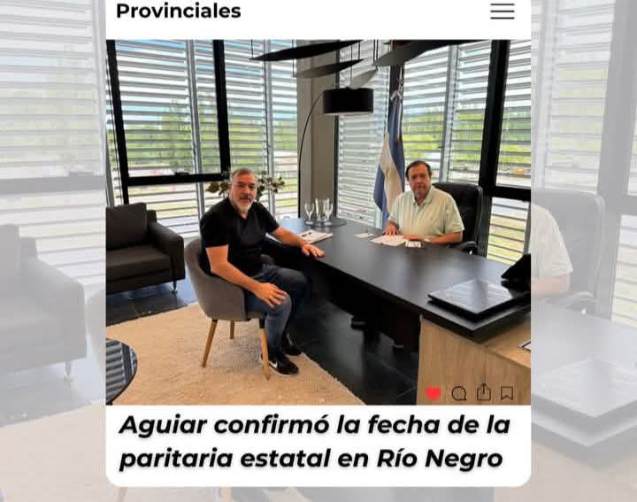 El Secretario General de ATE Nacional, Rodolfo Aguiar, se reunió este viernes con el Gobernador de Río Negro, Alberto Weretilneck, y acordaron que habrá paritarias en la provincia durante la última semana de enero.