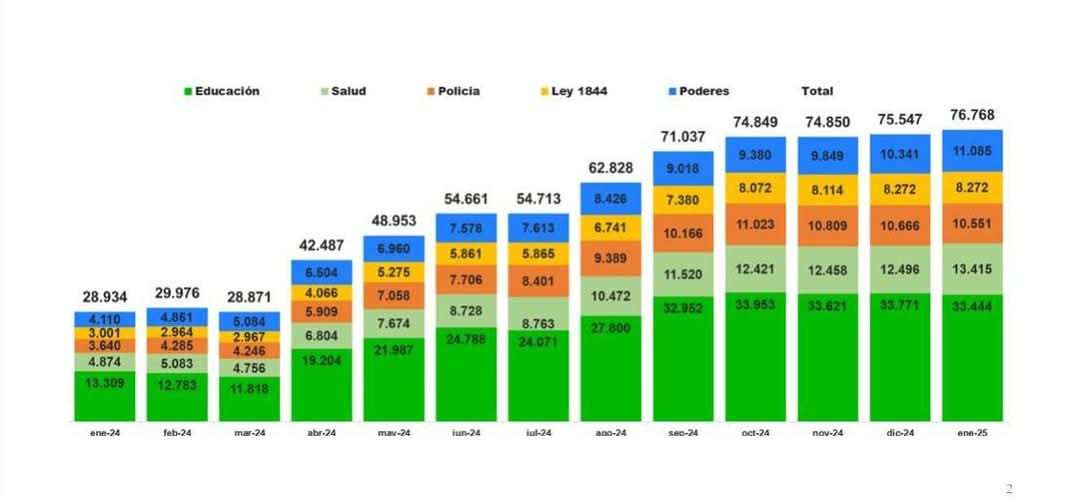 En el último año, los salarios del personal de la Ley 1.844 aumentaron un promedio del 179%, mientras que los de Salud subieron un 164%, los de Educación un 162%, los del personal policial un 146%, y los de los Poderes Judicial y Legislativo un 128%.