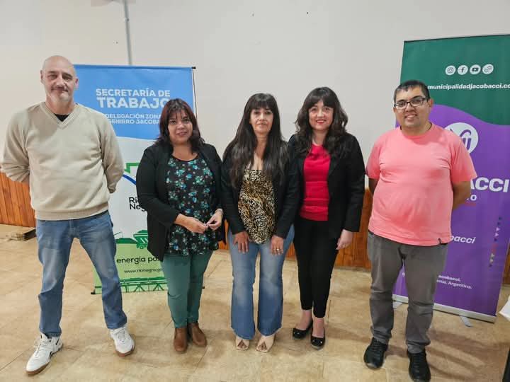 La secretaria de Gobierno, Obras y Servicios Públicos, Karina Perdomo, el Legislador Norberto Moreno, y la delegada de Trabajo en Jacobacci Yaura Abi Saad participaron del encuentro.